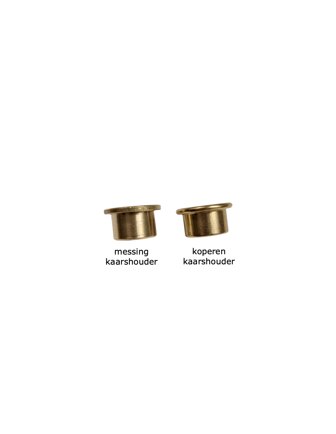 Een koperen kaarsenhouder welke precies past in de verjaardagsring van Grimm's
